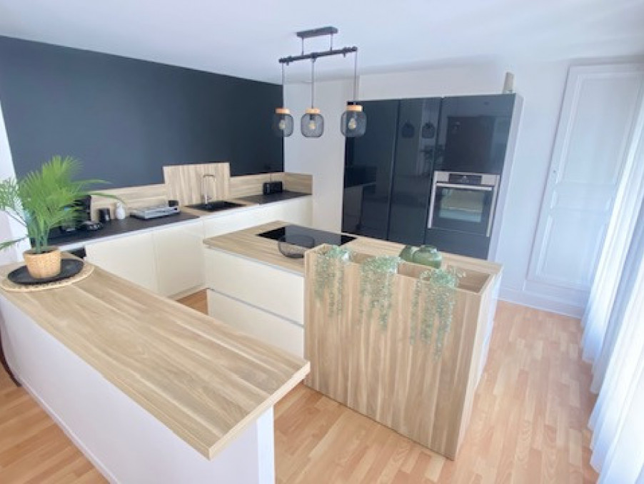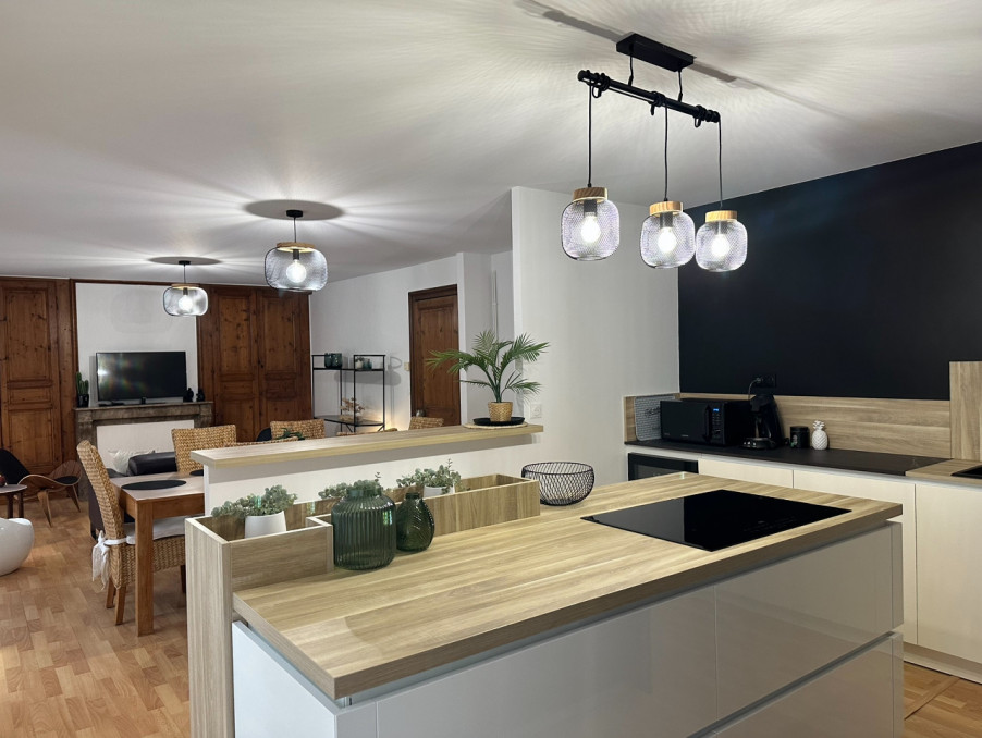 Magnifique appartement duplex type T4 situé au coeur de la ville tout confort, vendu meublé prestations et décorations très soignées. présentant de beaux volumes, unité de vie salon séjour chaleureux et cocooning avec une cuisine ouverte fonctionnelle sur mesure, wc avec lave-mains et espace laverie chaufferie.