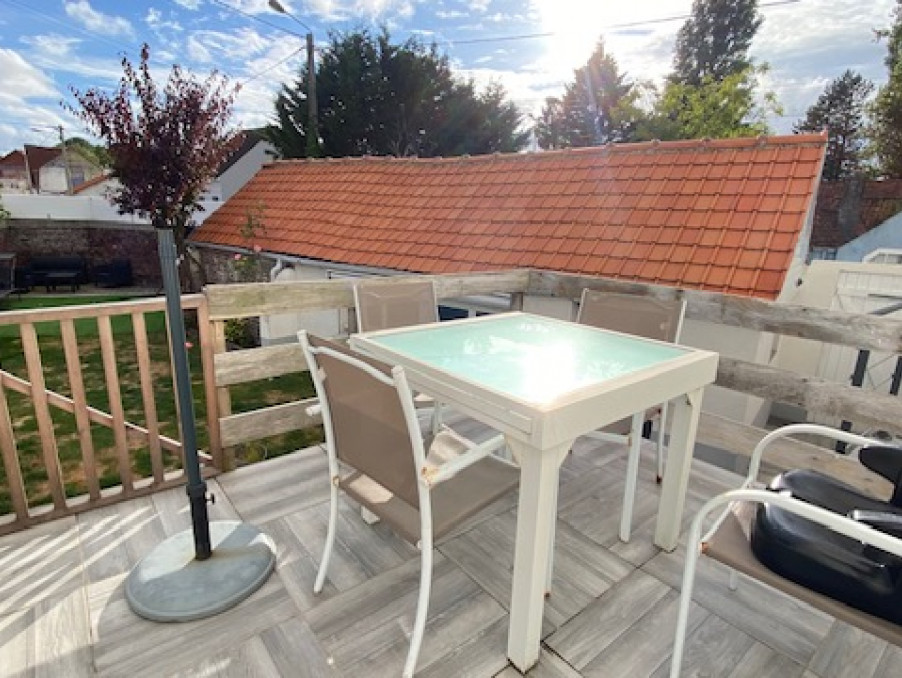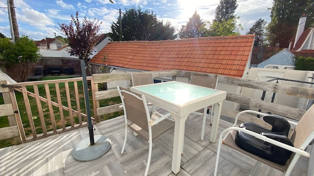 Lisière du Touquet, proche des commerces, Maison d'env. 94 m² avec studio indépendant d'env. 30 m² composée d' une pièce de vie avec terrasse, une cuisine ouverte, wc. Au 1er étage : deux chambres avec salle d'eau et wc. Au second une suite parentale avec baignoire et wc