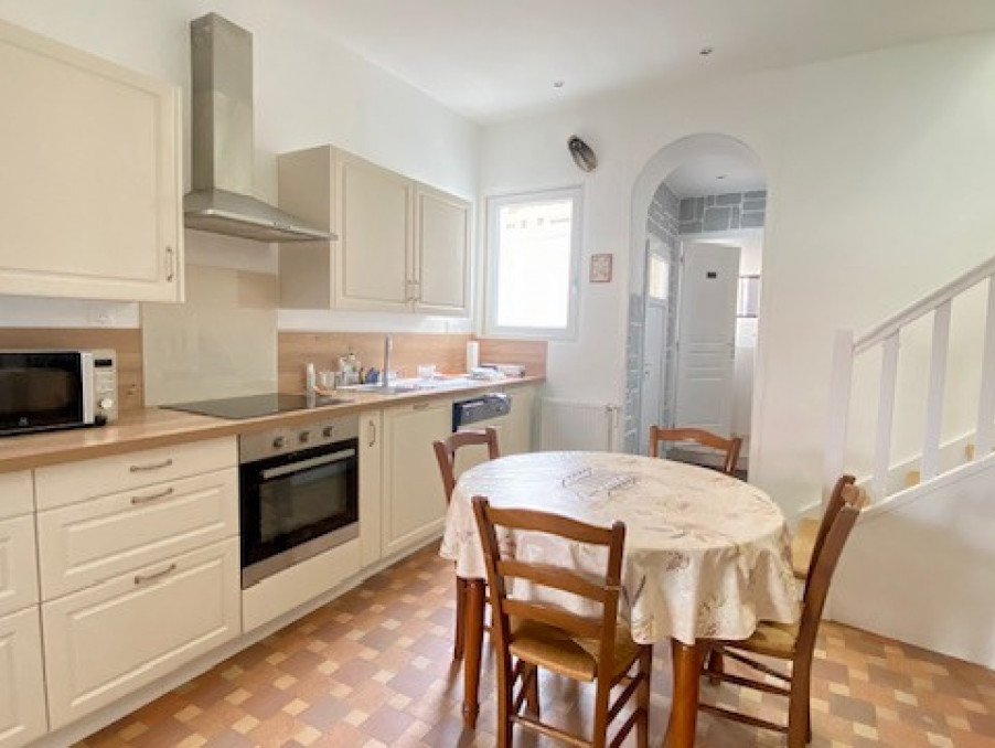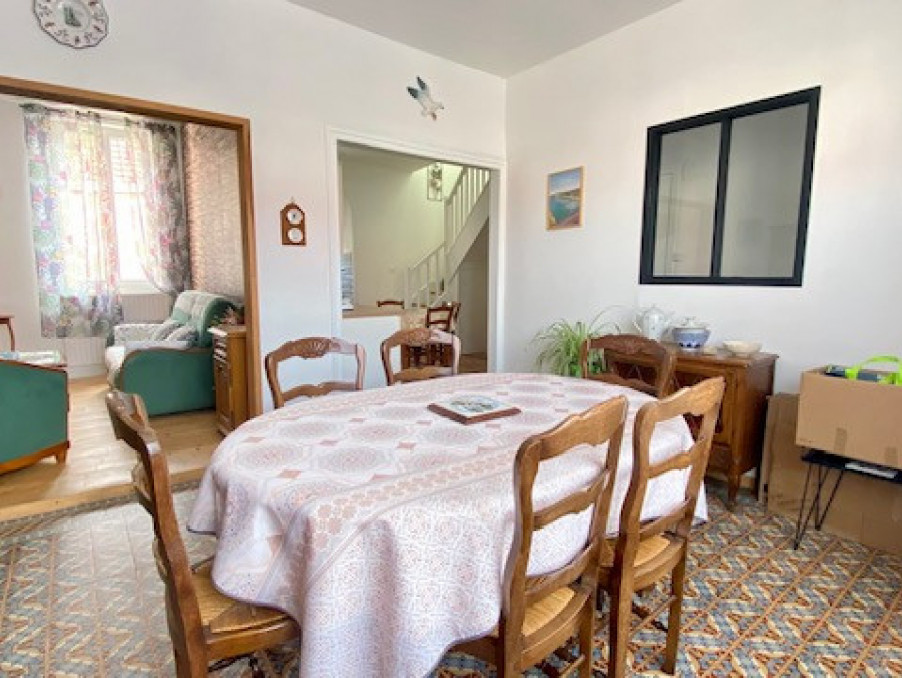 Idéalement située axe centre, port et gare maison de ville parfait état qui se compose d'une entrée, d'un séjour, salon, une cuisine aménagée, wc, une salle d'eau.