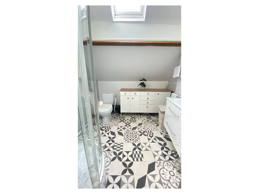 A l'étage : trois chambres, une seconde salle d'eau avec wc.