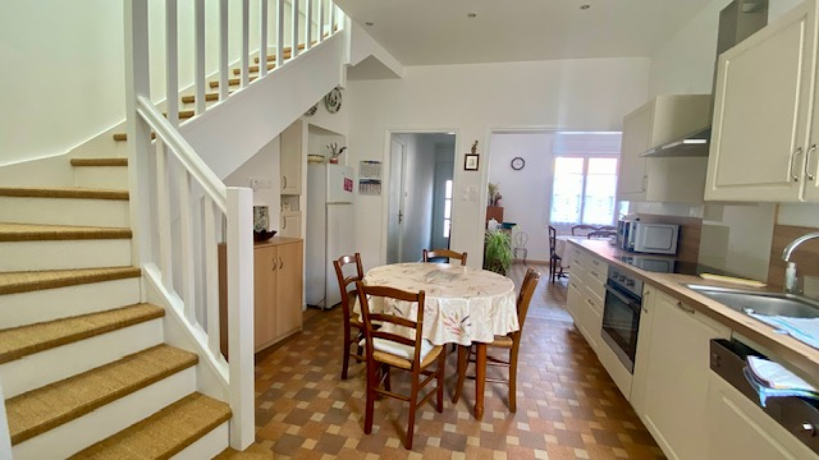 En secondaire ou à l'année, à deux pas du centre, maison de ville composée d'une entrée, un séjour, salon, une cuisine aménagée, wc, une salle d'eau.